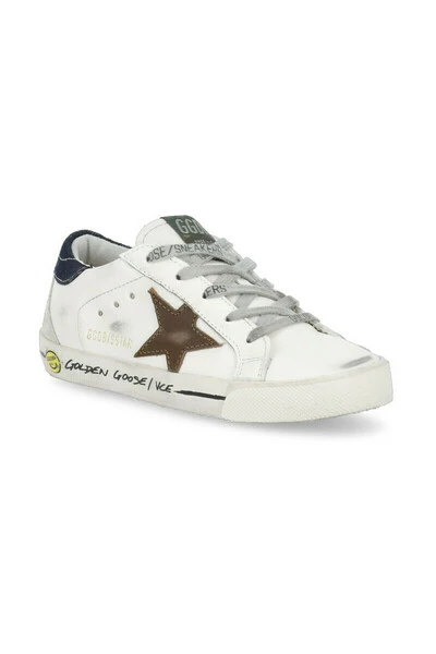 Golden Goose Sneakers – White Golden Goose Leather Sneakers For Girl – Round Toe – Voorste aangemaakte Golden Goose Leters bevestigen – Golden Goose Tab bij tong – zijde contrasterende kleur Lederen Star – Achter katoenen tabblad – Rubberen zool met letted detailDeze beschrijving is automatisch vertaald.