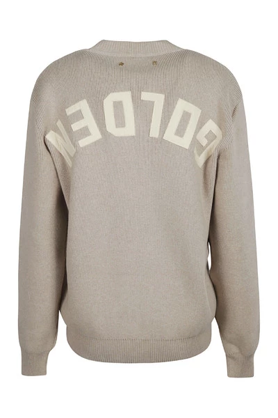 Gouden gans truien beige licht beige stretch-katoenen darlyn logo-belet jumper van gouden gans met logo letters, crew hals, lange mouwen, geribbelde manchetten en geribbelde zoom.