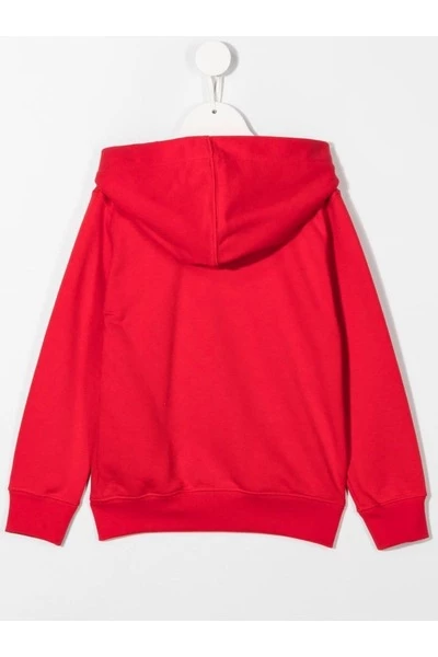 Rood sweatshirt met kap en ritssluiting. GGDB wit bedrukt logo.