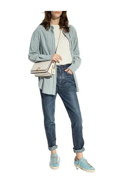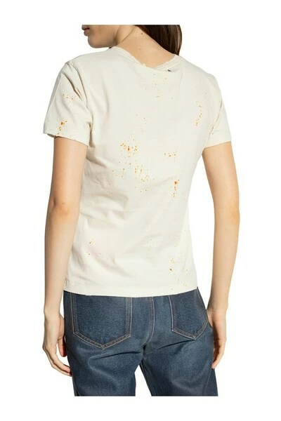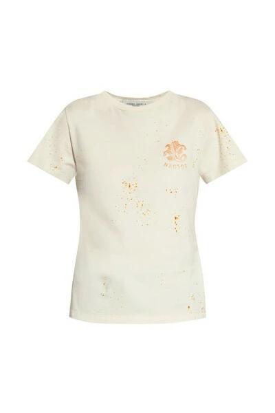 Cream Crewneck T-shirt van Golden Goose. Gemaakt van katoen, dit kledingstuk is versierd met een bedrukt logo -patroon in bruin oranje.