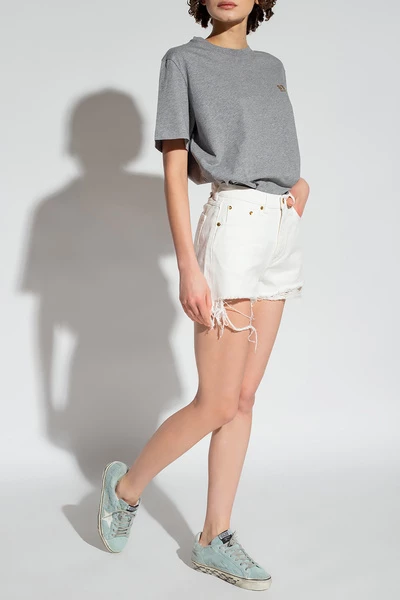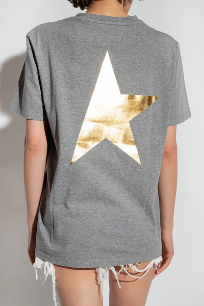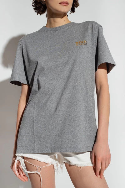 Grijs t-shirt van Golden Goose. Gemaakt van katoen, dit ontwerp met korte mouwen beschikt over een bedrukt logo-patroon in goudkleurige en geribbelde bemanningshals.