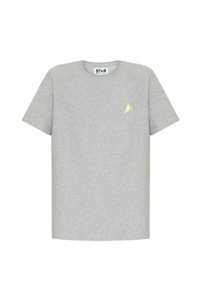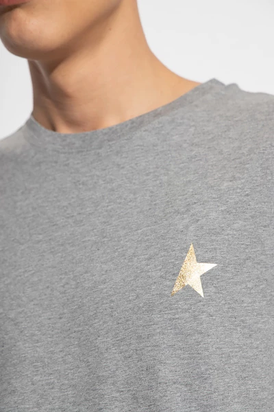 Grijs t-shirt van Golden Goose. Gemaakt van katoen, dit ontwerp met korte mouwen beschikt over een goudkleurige logo-print en geribbelde bemanningshals.