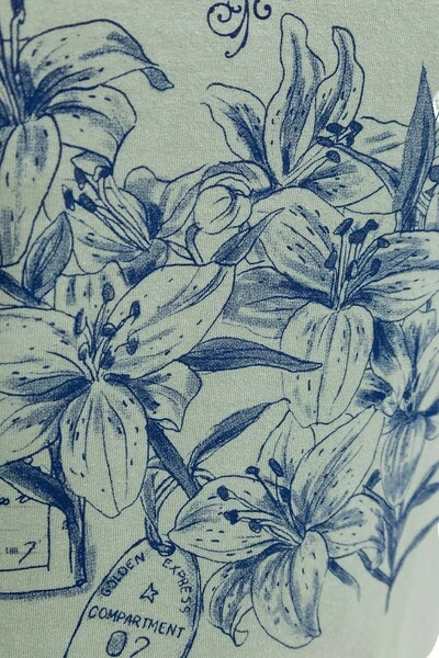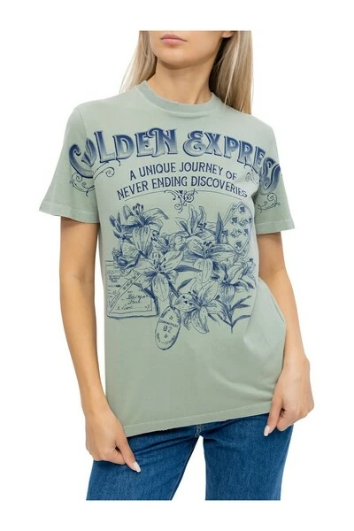 Greenish Gray Crewneck T-shirt van Golden Goose. Gemaakt van katoen, dit kledingstuk wordt verrijkt door een gedrukt patroon in marine en decoratieve noodlijdende details.