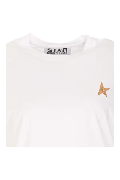 Golden Goose T-shirts en Polos White Woman T-shirt, Star Model, Glitter, Golden, Logo