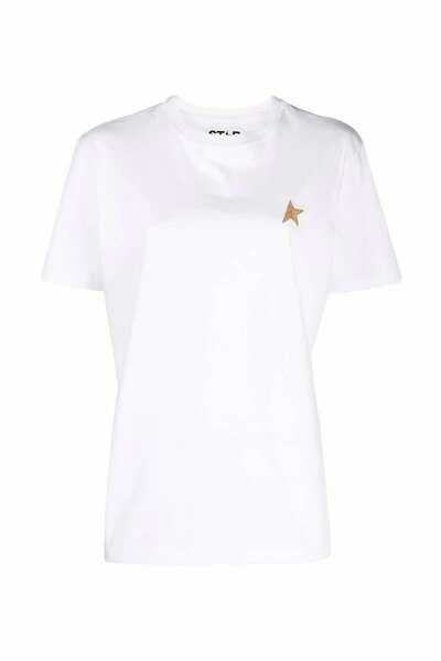Een collectie met een informele ziel, maar een veelzijdige houding: geïnspireerd door de jaren zeventig, heeft het een tijdloze vintage aantrekkingskracht, geschikt voor elke gelegenheid of uiterlijk. Deze ronde hals, reguliere-fit t-shirt in wit pure katoen heeft een ster aan de voorkant in goud glitter. Een kostbare touch om je dagelijkse avonturen op te vrolijken. – Ronde hals – Gold Glitter Star aan de voorkant – Korte mouwen – 100% katoen