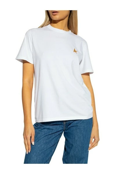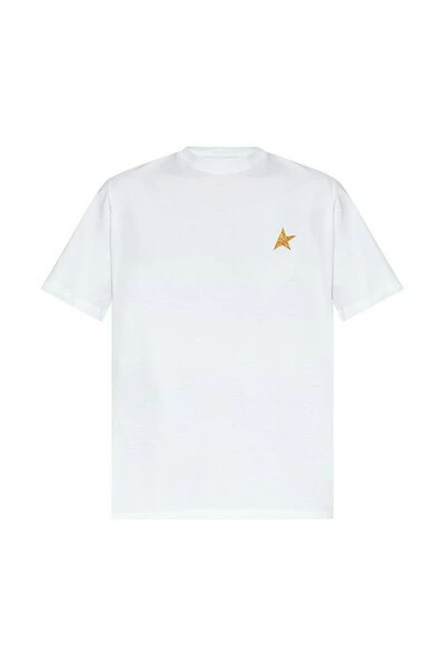 Wit t-shirt van het crewneck met een goudkleurige glitterapliqué van Golden Goose.