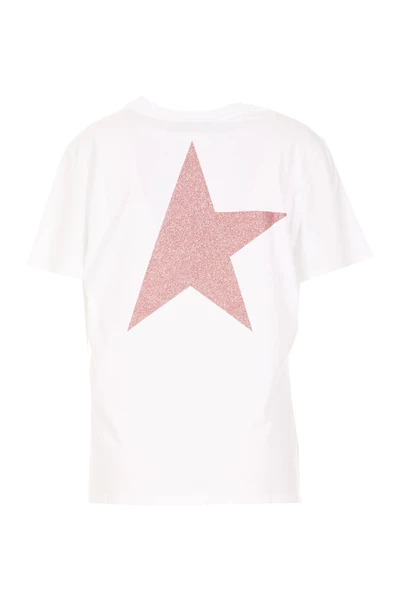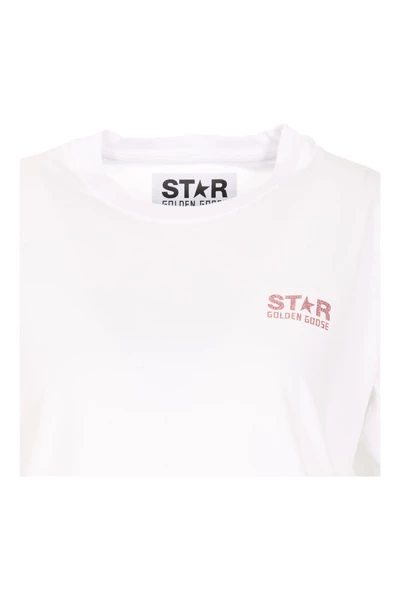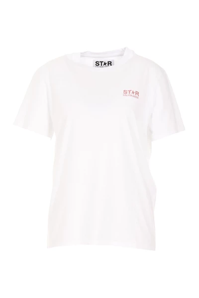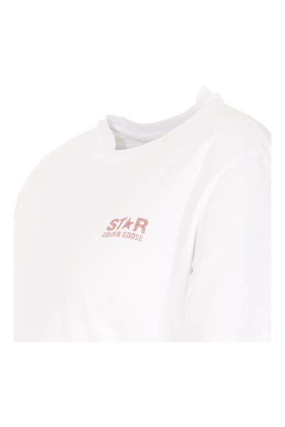 Golden Goose White T-shirt, Crewneck, Frontal Star Logo, Glitter Details