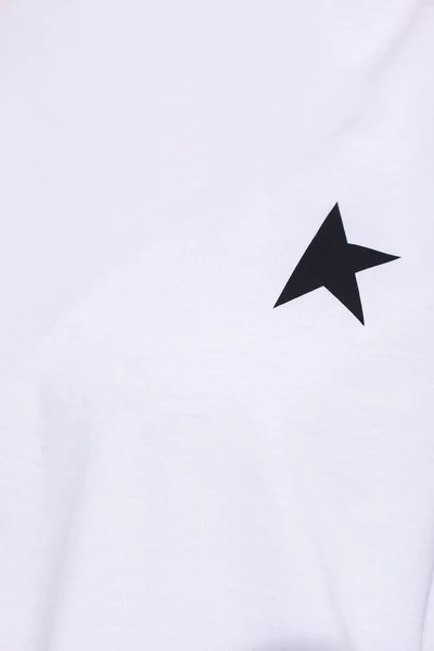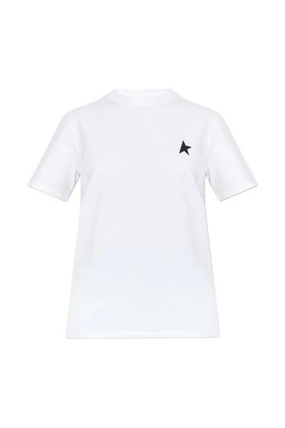 Wit t-shirt van het Crewneck van Golden Goose. Gemaakt van katoen, deze stijl heeft korte mouwen, een elastische kraag en een zwarte grafische afdruk met het logo van het merk.
