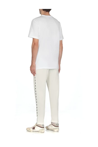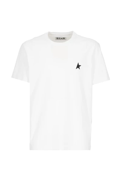 Golden Goose T -shirts en polo`s – Wit Golden Goose katoen T -shirt voor man – Ronde halslijn – Korte mouwen – Contrasterende kleurster