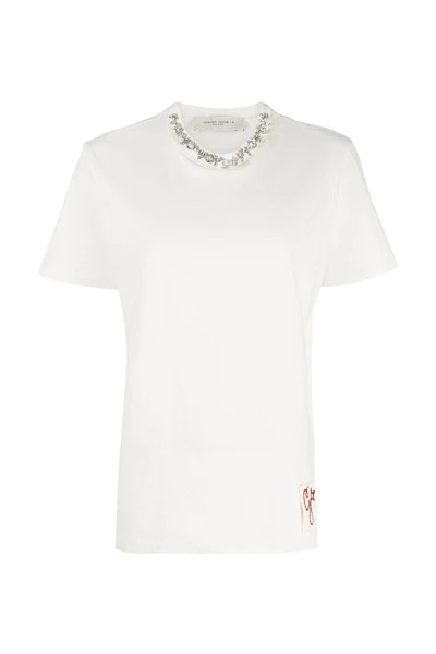 Golden Goose T-shirts en polos geborduurd katoenen t-shirt van Golden Goose met wit, katoen, trui, geborduurd logo, bemanningslid, korte mouwen en rechte zoom.
