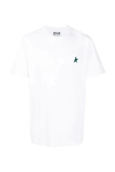 Golden Goose T-shirts en Polos White Star Logo-Print T-shirt van Golden Goose met wit, katoen, logo-print aan de borst, bemanningslid, korte mouwen en rechte zoom.