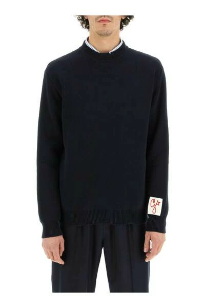 Golden Goose Crew-hals trui gemaakt van stretch pima-katoen, gedetailleerd met verwijderbaar G-label op de manchet. Ontspannen pasvorm, verontruste geribbelde randen. Dubbele metalen sterrentoepassing op de bovenrug. Het model is 187 cm lang en draagt een maat L.