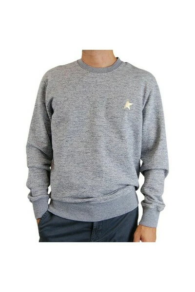 Jersey Golden Goose -ster. Sweatshirt met lange mouwen en ronde nek op een Jaspeado blauwachtig grijs. Het model meet 184 cm weegt 80 kg en draagt maat L.