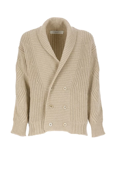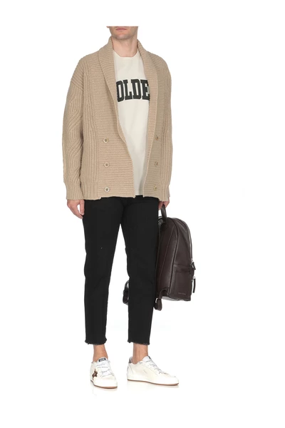 Golden Goose Sweaters Beige – Beige Golden Goose Wool Double Breasted Cardigan For Man – V -Neck – Lange mouwen met lederen details – Knoppen voor de voorkant