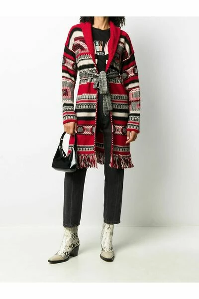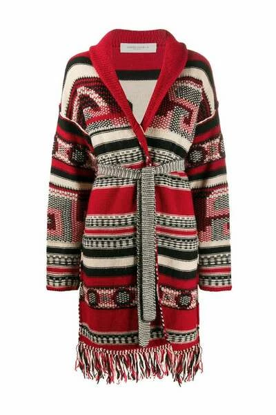 Kleur: Bordeau, wit, rood, zwart materiaal: 40% acryl, 40% wol, 20% alpaca met taille band gemaakt in Italië