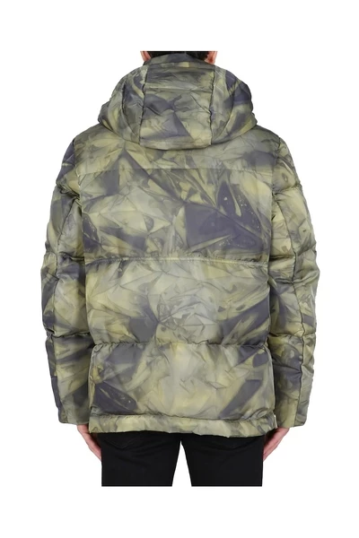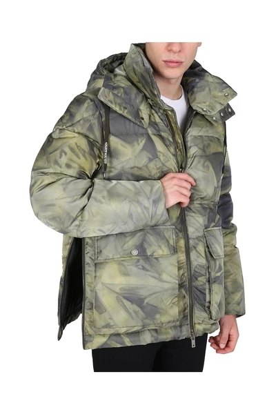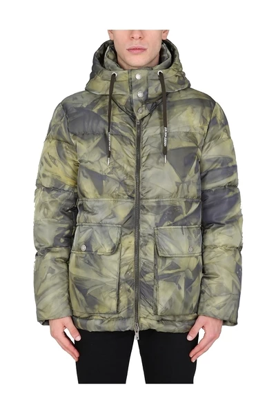 Kap met trekstring, knoop en zipafsluiting, twee voorzakken met knoppen, binnenste ritszak, gemaakt in Italië, model is 180 cm lang en draagt maat 48 IT, model is 185 cm lang en draagt maat 48 het.